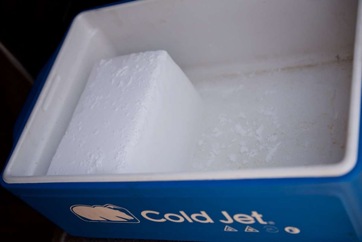 A szárazjég pelletet nagynyomású és nagy mennyiségű levegő segítségével szórjuk a tisztítandó felületre. A szennyeződések megkeményednek, törékennyé válnak az alacsony hőmérséklet hatására. Ez lecsökkenti a rugalmasságukat és tapadó képességüket, ezáltal könnyebbé válik az eltávolításuk.
